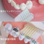 傾斜した毛先が難しい奥歯の裏側も簡単に磨くことが できて使用後はスッキリ。 細かい部分を得意とする形は矯正用ブラシ他 歯並びが気になる方、大人の歯に生え代わる時期の 小学生もキチンと磨けてピカピカに。