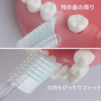 磨き残しやすいポイント,歯と歯の間・歯と歯茎の境目 ・奥歯のかみ合わせ・歯石の付きやすい前歯の裏側に ぴったりフィット。長さの違う毛先が歯面へ柔軟に当たる 使用感は最高の磨き心地。ブラッシング後の ツルツルした舌触りをぜひ体感してください!